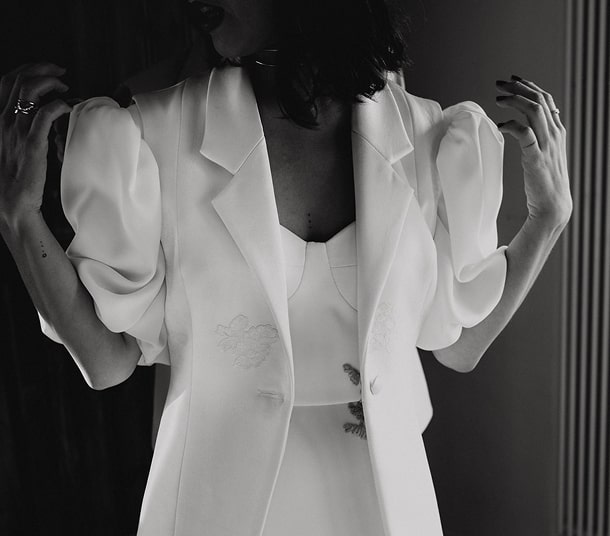 Un día, mientras colocaba una gasa sobre su vestido para valorar la posibilidad de introducirla, la forma que tomó fue tan delicada que supimos que había que conservarla. Hilvanamos, y después cosimos exactamente así. No hubo plan, solo intuición, improvisación y complicidad.